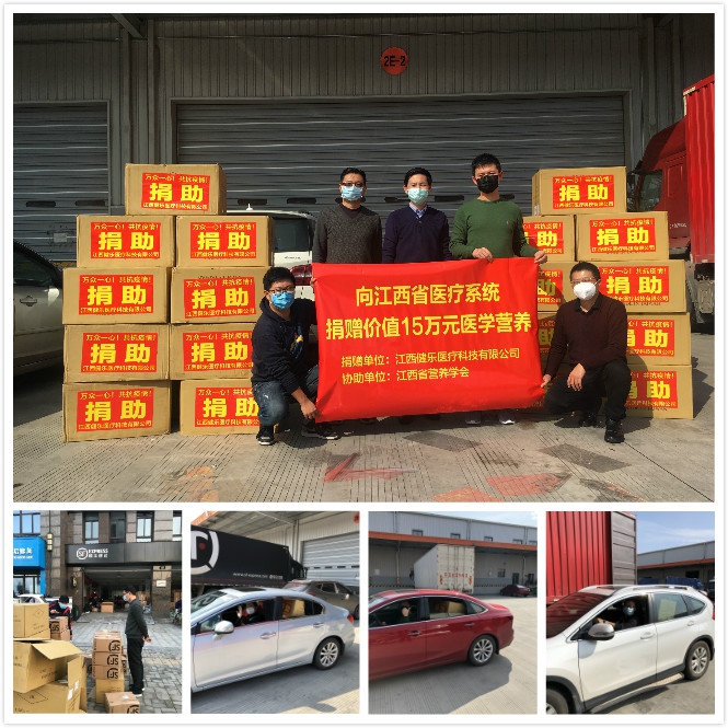 為了給醫務工作者提供營養支持,江西健樂醫療第一時間召開公司緊急會議,聯絡寧波港口的倉庫,安排醫學營養樂能素捐贈事宜,同時得到了江西省營養學會的協助,第一時間與江西省醫療系統南昌大學第二附屬醫院、南昌市第九醫院、鷹潭市人民醫院、撫州市第一人民醫院、新余市人民醫院、萍鄉市第二人民醫院、贛南醫學院第一附屬醫院各單位取得聯系,聆聽各單位的需求,時刻準備提供力所能及的幫助與支持,積極承擔社會責任。