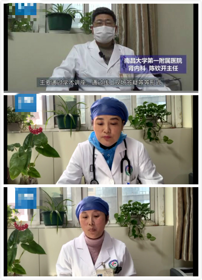 為了呼吁人們關注慢性腎病的預防及病后的自我健康管理,由于受新冠肺炎疫情的影響,今年南昌大學第一附屬醫院腎內科“世界腎臟日”活動改為線上直播講座活動,活動邀請到南昌大學第一附屬醫院腎內科主任陳欽開教授、腎內科副主任鄢艷教授和腎內科肖俊副主任醫師在線授課和網上答疑。