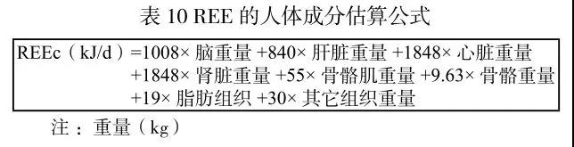 根據不同組織、器官的代謝率,Elia?M 提出了一個 REE 計算(Calculation?of?REE,REEc) 公式,見表 10。