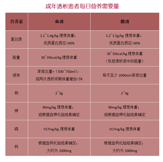 透析患者的蛋白質攝入量取決于年齡、體型和體重,并應攝入適量的優質蛋白質。每日蛋白質的攝入總量不宜低于或高于這一推薦量。因為攝入太多的蛋白質會使血液尿素氮、鉀水平增高;而蛋白質攝入太低則會導致營養不良或貧血。