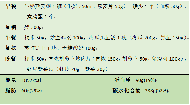 備注:全日烹調用植物油20g,食鹽3g,醬油5ml。
