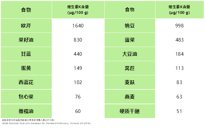 富含維生素K的食物